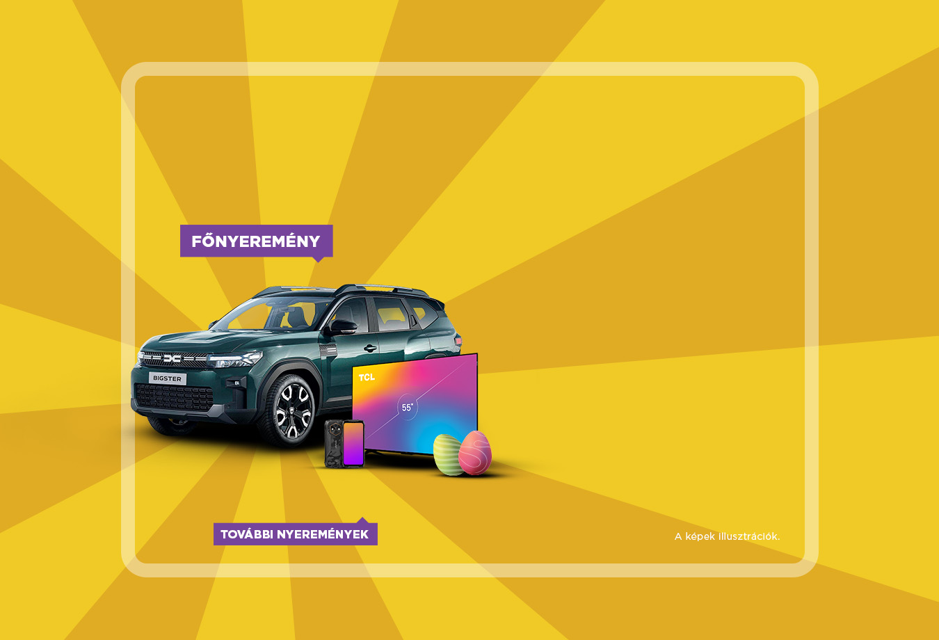 VÁSÁRLÁSODDAL EGY VADONATÚJ DACIA BIGSTER EXTREME, EGY TCL TV, VAGY EGY RUGKING 4 PRO TELEFON IS A TIÉD LEHET!